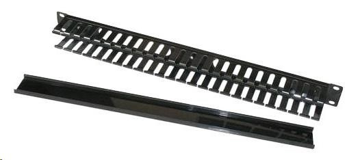 19" vyvazovací panel 1U, kovový s plastovým krytem, 40x50mm, průchozí, černý