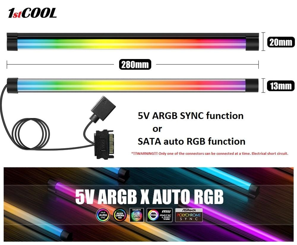1stCOOL AURA RAINBOW led ARGB osvetlenie, sklenená trubica 28cm 3-pin ARGB konektor, alebo automatický režim cez SATA konektor