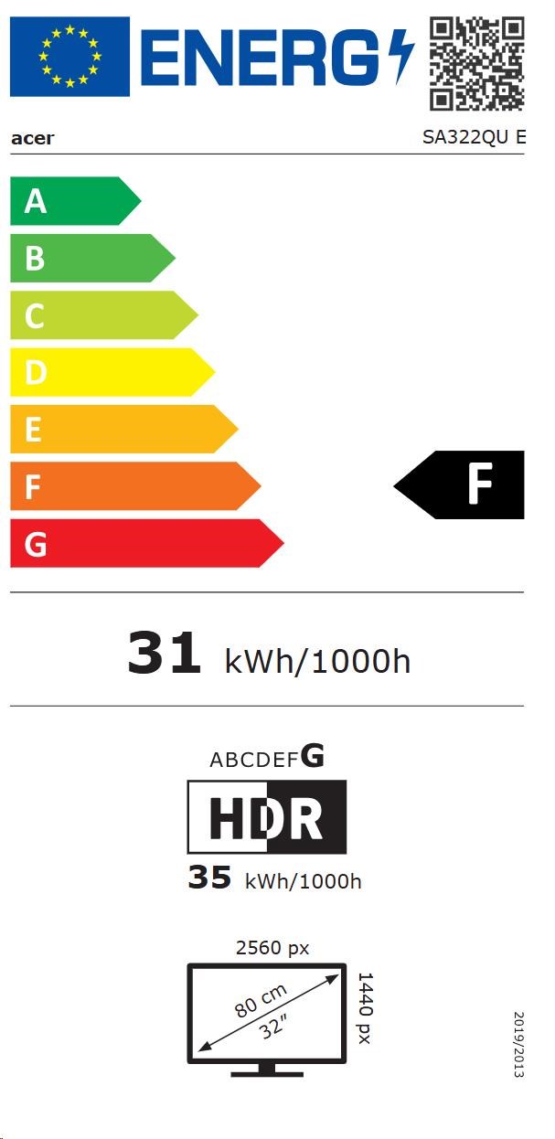 ACER LCD SA322QUEbmipx,31.5" 2560x1440 IPS LED,300nits,100Hz,178/178,4ms,HDMI,DP,Vesa,Audio,Black