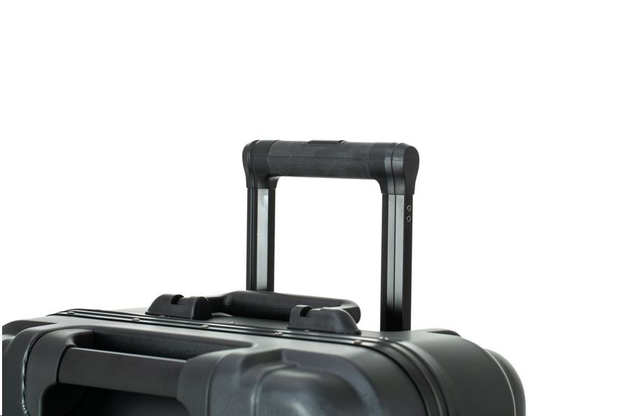 Snadné tlačení, tahání a otáčení – čtyři tichá dvojitá otočná kolečka minimalizují hluk a tlumí nárazy, což zajišťuje vynikající uživatelský zážitek s 360stupňovou manévrovatelností. Dvě rukojeti na přední straně pomáhají uživatelům zvedat zavazadlo oběma rukama a zabraňují bolesti zad/pasu. Teleskopická rukojeť kufru s PU kůží na horní straně, která zabraňuje kyselinám způsobeným potem, deštěm a vodou.