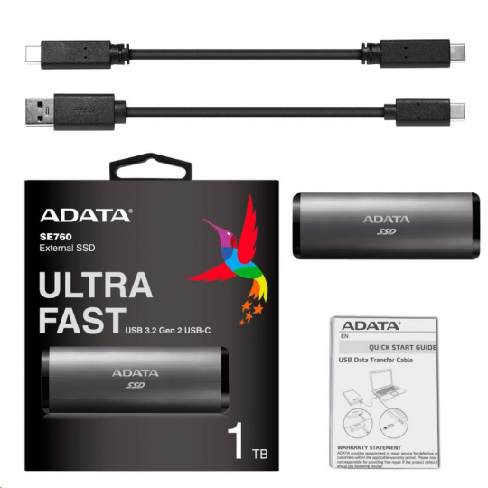 Externý disk SSD SE760 kombinuje elegantnú estetiku s vysokorýchlostným výkonom. Okrem toho má SSD disk čistý a jednoduchý dizajn, ktorý sa vyznačuje robustným kovovým plášťom a čistým, lešteným povrchom. Používanie USB 3.2 Gen 2, dosahuje SE760 rýchlosť až 1000 MB/s.