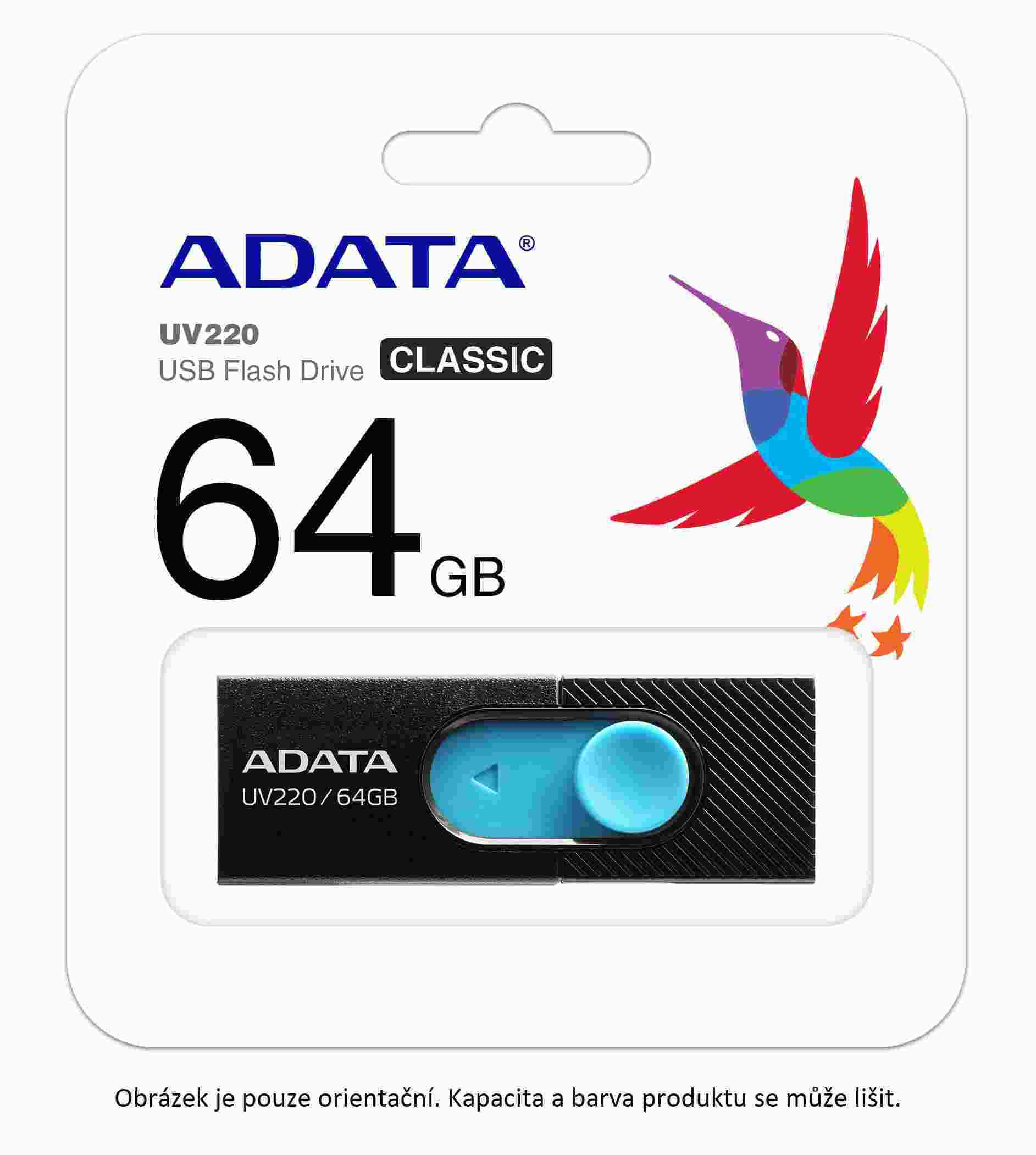 ADATA Flash disk 32GB UV220, USB 2.0 Dash Drive, čierna/modrá