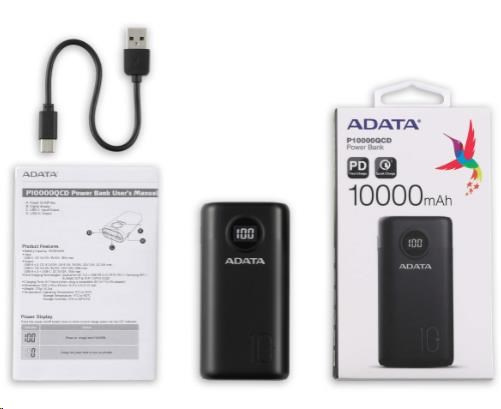 ADATA PowerBank AP10000 - externá batéria pre mobilný telefón/tablet 10000mAh, čierna (37Wh) USB-C