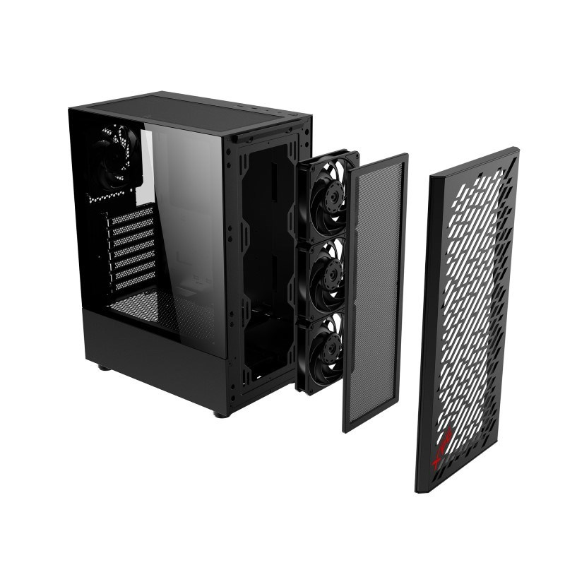 XPG VALOR AIR je kompaktné ATX mid-tower šasi s dizajnom predného panelu Streamline-Carving. Magnetický predný panel a filter sú odnímateľné, vhodné pre rýchle čistenie. Bočný panel z 3mm tvrdeného skla slúži ako spôsob, ako si užiť pohľad cez tvrdené sklo.