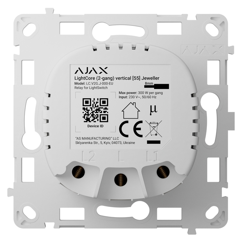 Zariadenie sa inštaluje v kombinácii s inteligentným krytom Ajax Button (Solo,Center, Side) v mnohých typoch a farbách a spoločne vytvárajú inteligentný nástenný vypínač - LightSwitch.