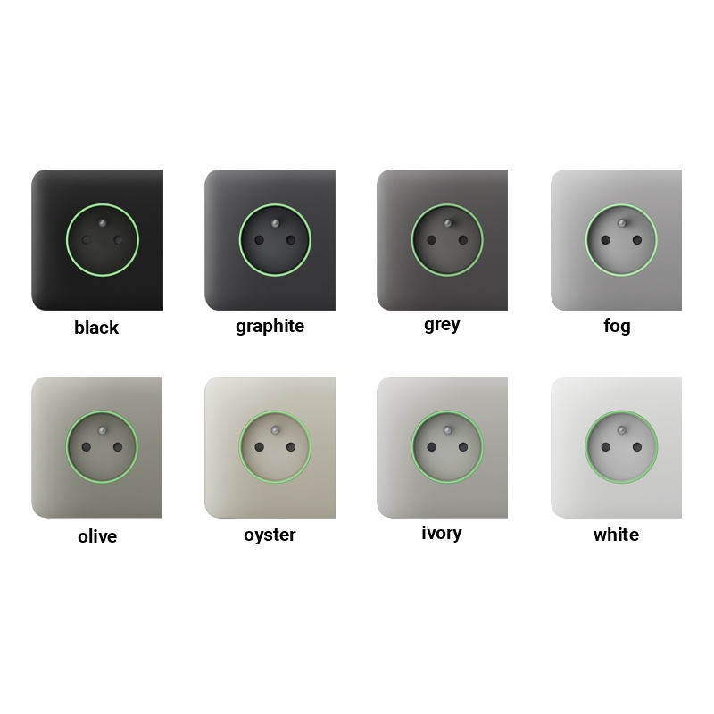 Zásuvky možno používať samostatne alebo ich kombinovať s inteligentnými vypínačmi LightSwitch a inštalovať do rámu. Zariadenia majú rovnaký dizajn rámu a farebné odtiene.