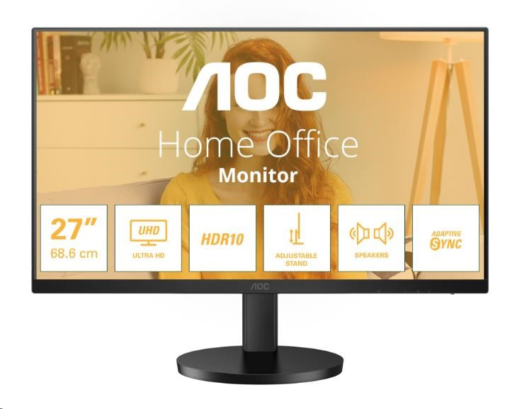 Zvýšte svoju produktivitu na maximum s monitorom AOC U27B3AF. Tento 27palcový UHD monitor sa môže pochváliť plynulou obnovovacou frekvenciou 60 Hz a elegantným trojstranným bezrámčovým dizajnom, ktorý zabezpečuje pohodlné sledovanie. Zbohom napätiu krku vďaka výškovo nastaviteľnému stojanu, ktorý poskytuje ergonomické funkcie pre vaše držanie tela. Vďaka technológii Adaptive Sync si navyše vychutnáte obraz bez slz a ohromne čerstvá grafika s podporou HDR10 zvýši váš vizuálny výkon. Vďaka vestavenému 2-wattovému reproduktoru si môžete dopriať lepší zvukový zážitok.