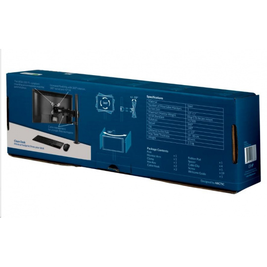 Rameno monitora možno namontovať na väčšinu povrchov pomocou robustnej a nastaviteľnej svorky, ktorá sa prispôsobí okraju stola rôznej hrúbky.