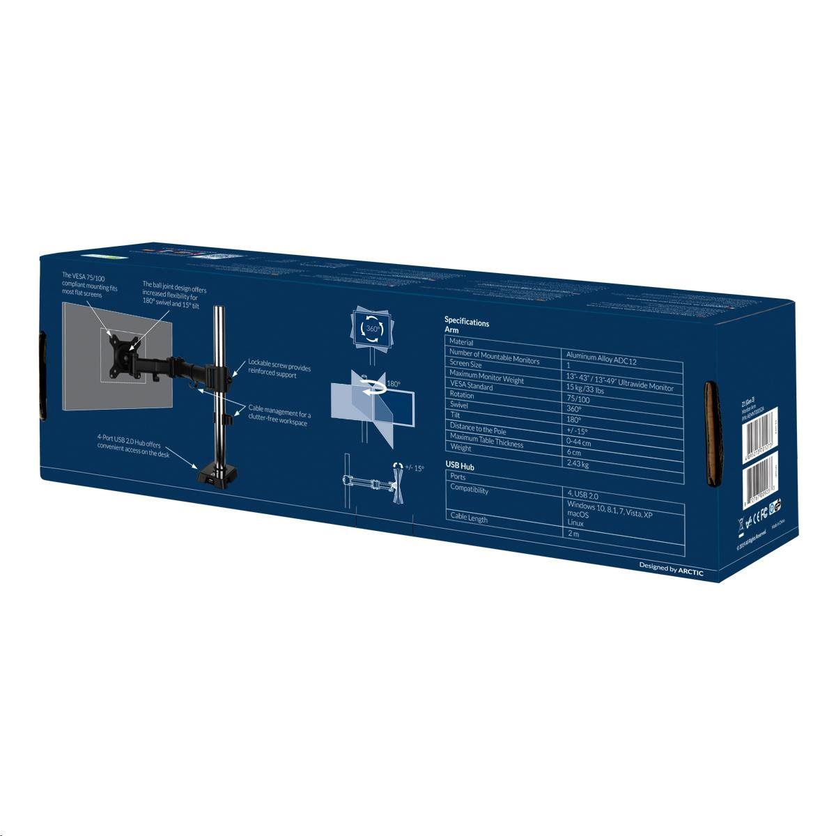 Držiak stola ARCTIC Z1 (Gen.3) pre 1x LCD do 43", nosnosť 15 kg, USB HUB, čierny