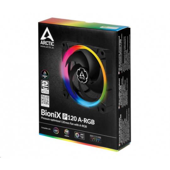 12 A-RGB LED diód nainštalovaných v BioniX P120 A-RGB je možné samostatne ovládať. BioniX P120 A-RGB je kompatibilný s bežnými štandardmi A-RGB popredných výrobcov základných dosiek pre čo najjednoduchšie použitie. Môže byť preto plne osvetlený priamo prostredníctvom pripojenia k základnej doske A-RGB alebo prostredníctvom externého ovládača a synchronizovaný s iným hardvérovým osvetlením.