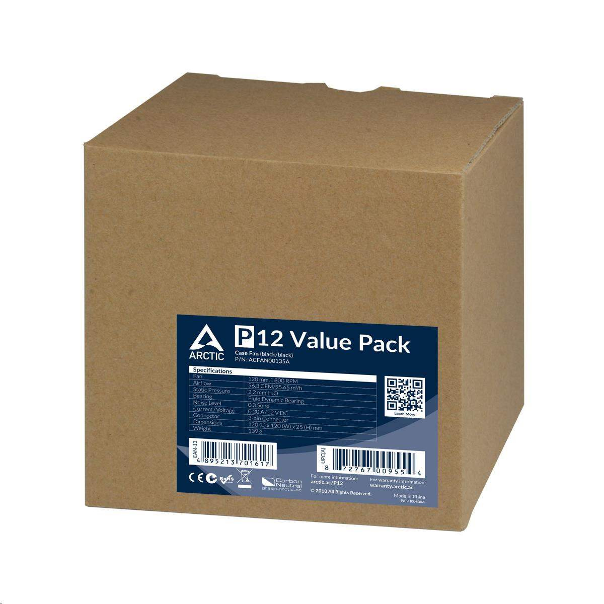 Ventilátor ARCTIC P12 120mm, hodnotné balenie (5ks), čierny
