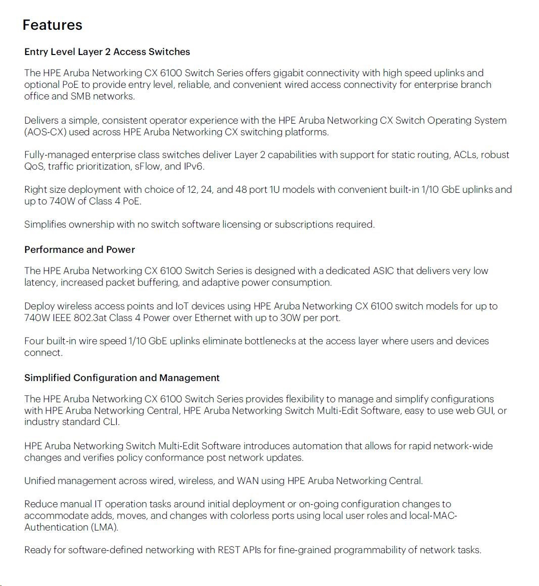 | Aruba 6100 48G Class4 PoE 4SFP+ 370W Switch (JL675A)) | |