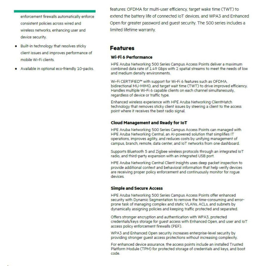 Link to the manufacturer's website: https://www.arubanetworks.com/assets/ds/DS_AP500Series.pdf