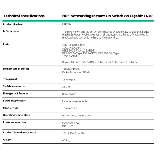Product Name: HPE Networking Instant On Switch 1430 8-Port Gigabit