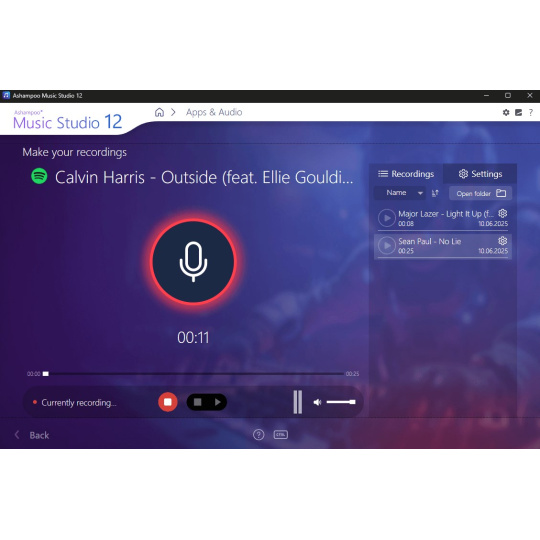 Nahrávání zvuku ve Windows může být složité, zejména pokud je nahrávací zařízení ztlumené. Music Studio 12 detekuje ztlumená zařízení a během nahrávání je automaticky zapne. Po dokončení obnoví jejich původní stav, takže nemusíte dělat nic. Je to perfektní řešení pro spontánní sezení a spolehlivé nahrávky a také bezchybně funguje s vaším mikrofonem v MS Teams, Zoomu a dalších aplikacích.