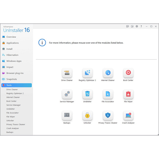 Ashampoo UnInstaller 16 nabízí komplexní řešení pro všechny vaše potřeby odinstalace v jednom robustním softwarovém balíčku. Díky možnostem forenzní analýzy můžete odstranit i starší podporované programy bez zanechání stop, bez ohledu na to, zda byla jejich instalace monitorována. Pokročilé čisticí moduly a nový Optimalizátor registru nabízejí znatelné zlepšení rychlosti a čistoty vašeho počítače. Software navíc obsahuje výkonné nástroje, jako je Crash Analyzer, který poskytuje přehled o systémových problémech a pomáhá s jejich řešením. Všechny tyto funkce jsou integrovány do rychlejší, stabilnější a modernější verze!