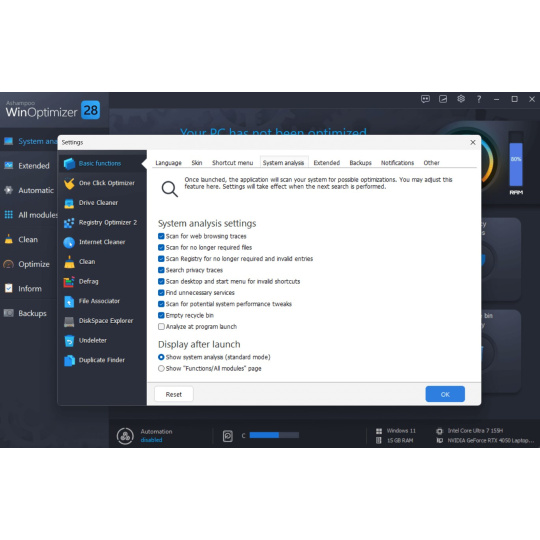 Automatická optimalizácia systému Windows je už dlho neoddeliteľnou súčasťou programu WinOptimizer. Je načase postarať sa o zvyšok! Tuning Assistant vám položí niekoľko jednoduchých otázok s ďalekosiahlymi dôsledkami. Každá odpoveď vás priblíži k rýchlejšiemu, diskrétnejšiemu a bezpečnejšiemu počítaču so systémom Windows - a to všetko pri neformálnej konverzácii s naším softvérom. Vypnite nepotrebné služby na pozadí, optimalizujte nastavenia zabezpečenia a prispôsobte systém Windows pre lepší výkon a súkromie, a to bez rizika!