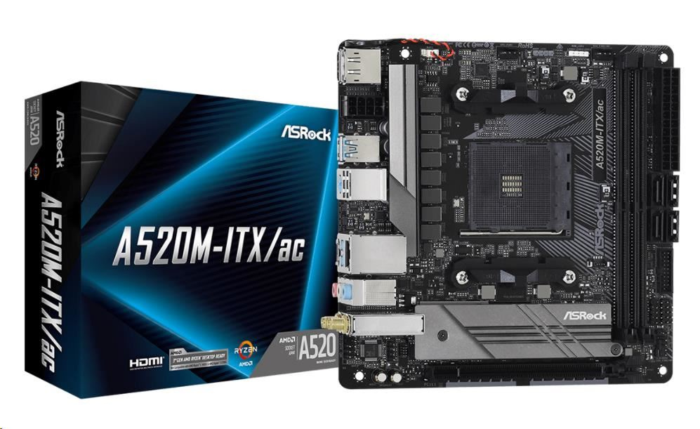 ASRock MB Sc AM4 A520M-ITX/AC, AMD A520, 2xDDR4, HDMI, DP
