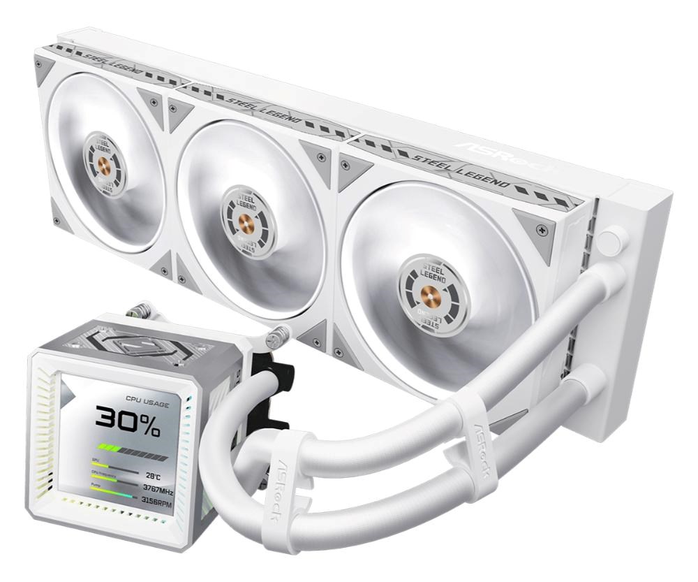 ASROCK Vodní chladič Steel Legend 360 LCD, 3x120mm, LGA1851, AM5, bílá