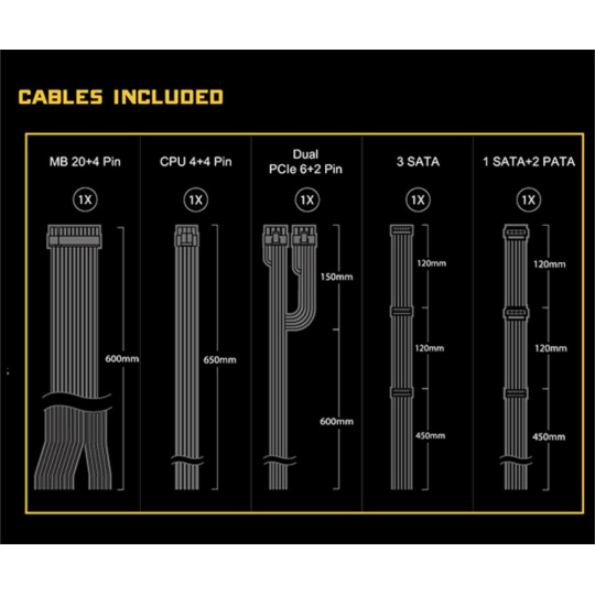 | PCIe 12V- 2x6 | 1x / 1x (650 mm) |