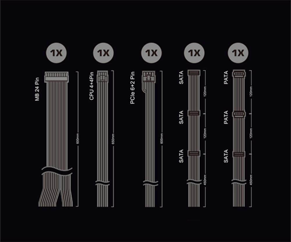 Formát zdroja:ATX; Konektory:8pin CPU 1x, PCIe 8-pin, SATA 15-pin, Molex; Konektory pre základnú dosku:ATX 24-pin.... viac