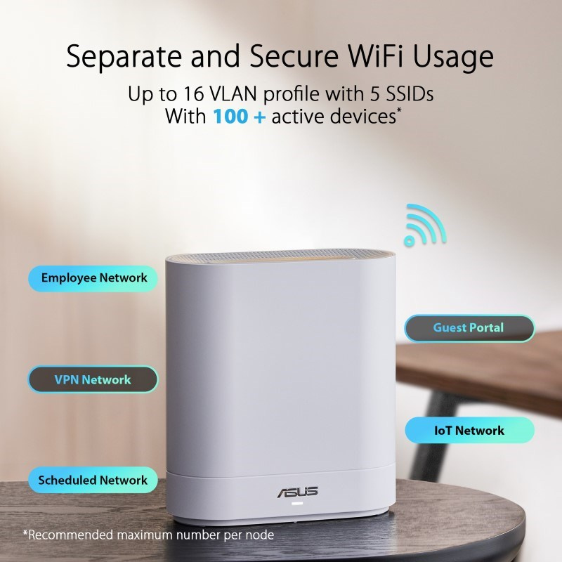 - Rozšíriteľné pokrytie WiFi – ExpertWiFi poskytuje až 12 sieťových pripojení uzlov na rozšírenie vašej obchodnej siete o funkcie AiMesh.