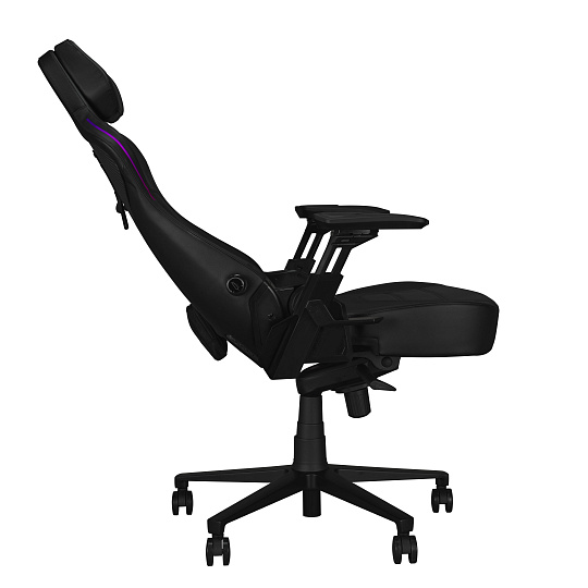 Herní židle ROG Courser s nastavitelnou bederní opěrkou lisovanou za studena pro podporu a proudění vzduchu, 4D područkami, ultraširokým sedákem, magnetickou opěrkou hlavy, dynamickým synchronizovaným systémem sklápění a osvětlením Aura RGB