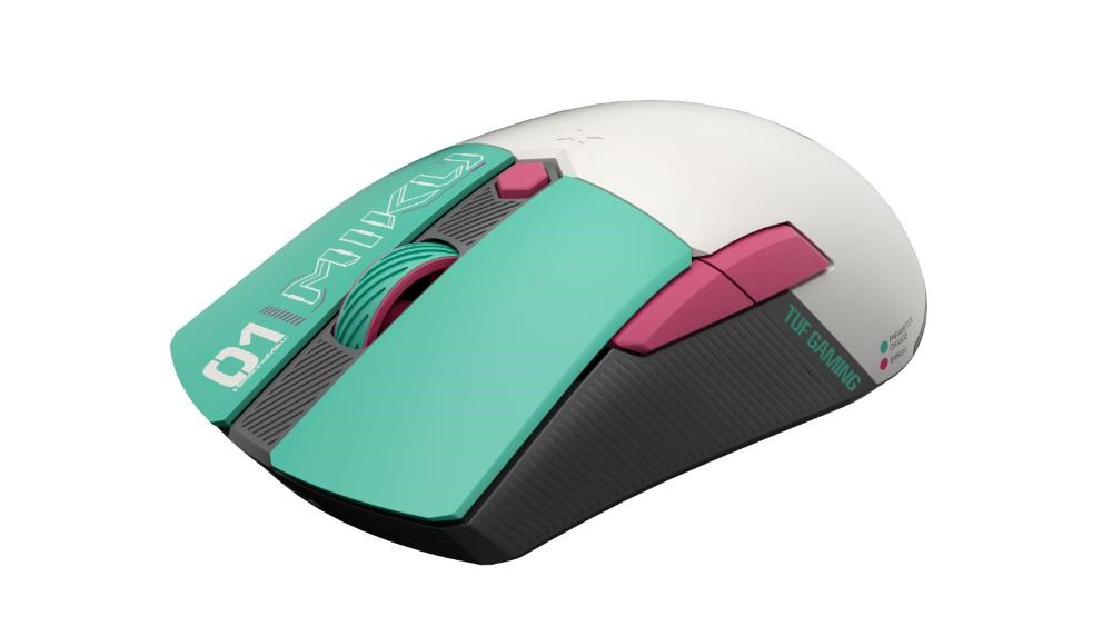 ASUS TUF Gaming Mini Bezdrôtová myš Hatsune Miku Edition je kompaktná 65 gramová bezdrôtová herná myš s trojrežimovým pripojením, snímačom s rozlíšením 12 000 dpi, spínačmi s životnosťou 100 miliónov kliknutí, teflónovými nohami a šiestimi programovateľnými tlačidlami.