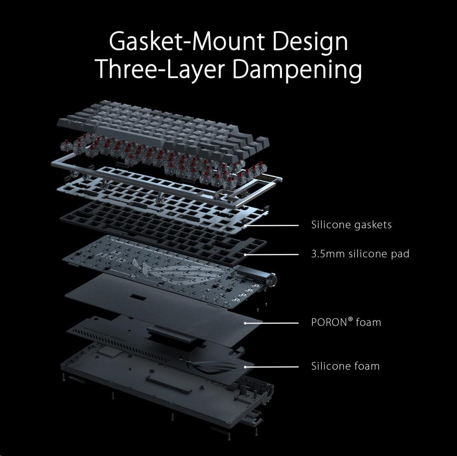 - Vylepšené možnosti psaní: Předem namazaný stabilizátor klávesnice vytváří menší tření pro hladší stisk kláves a stabilitu pro delší klávesy; odolné klávesy ROG PBT doubleshot nabízejí prémiový pocit