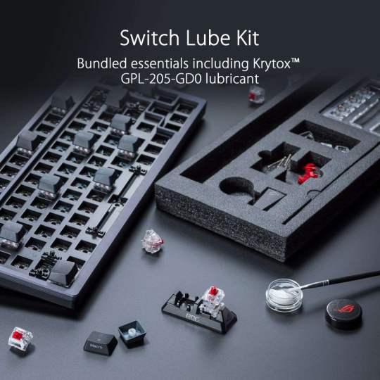 - Sada spínacích lubrikantov: Pribalený základný materiál vrátane lubrikantu Krytox™ GPL-205-GD0, ktorý začiatočníkom pomôže začať s vlastnou výrobou klávesnice