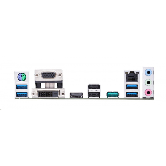 | Zadné I/O porty | 1 x kombinovaný(é) port(y) klávesnica/myš PS/2 1 x DVI-D 1 x D-Sub 1 x HDMI 1 x port(y) LAN (RJ45) 1 x USB 3.2 Gen 2 (teal blue) (1 x Type-A) 4 x USB 3.2 Gen 1 (modrý) Type-A 2 x USB 2.0 3 x audio konektor(y) |