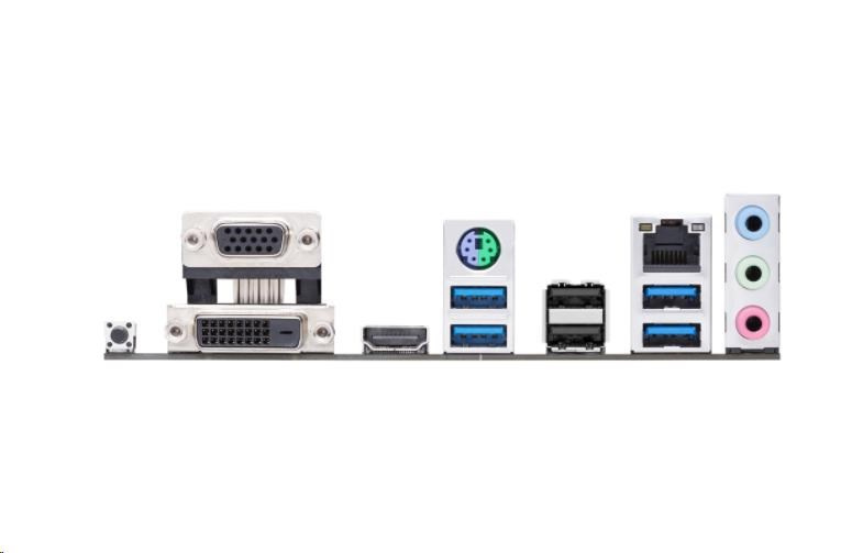 | Zadné I/O porty | 1 x kombinovaný(é) port(y) klávesnica/myš PS/2 1 x DVI-D 1 x D-Sub 1 x HDMI 1 x port(y) LAN (RJ45) 4 x USB 3.2 Gen 1 (modrý) Type-A 2 x USB 2.0 3 x audio konektor(y) 1 x tlačidlo(a) BIOS FlashBack™ |