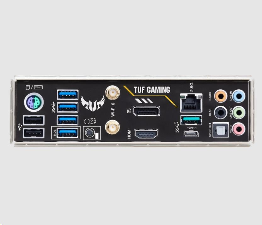 • Vytvorené pre online hry: Wi-Fi 6, Realtek 2.5Gb Ethernet a TUF LANGuard