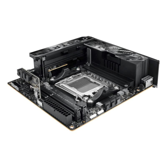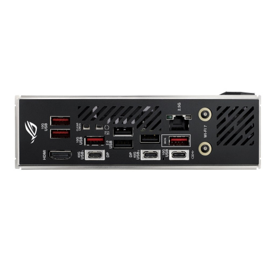AMD X870 Mini-ITX základná doska s 10+2+1 napäťovými stupňami, Dynamic OC Switcher, Core Flex, DDR5 zásuvkami s AEMP, WiFi 7 s ASUS WiFi Q-Antenna, dve M.2 zásuvky, PCIe® 5.0 x16 SafeSlot s PCIe® Slot Q-Release Slim a plnou podporou grafických kariet budúcnosti, dva USB4® porty, ROG Strix Hive II, AI Overclocking, AI Cooling II, AI Networking II a Aura Sync RGB osvetlenie.