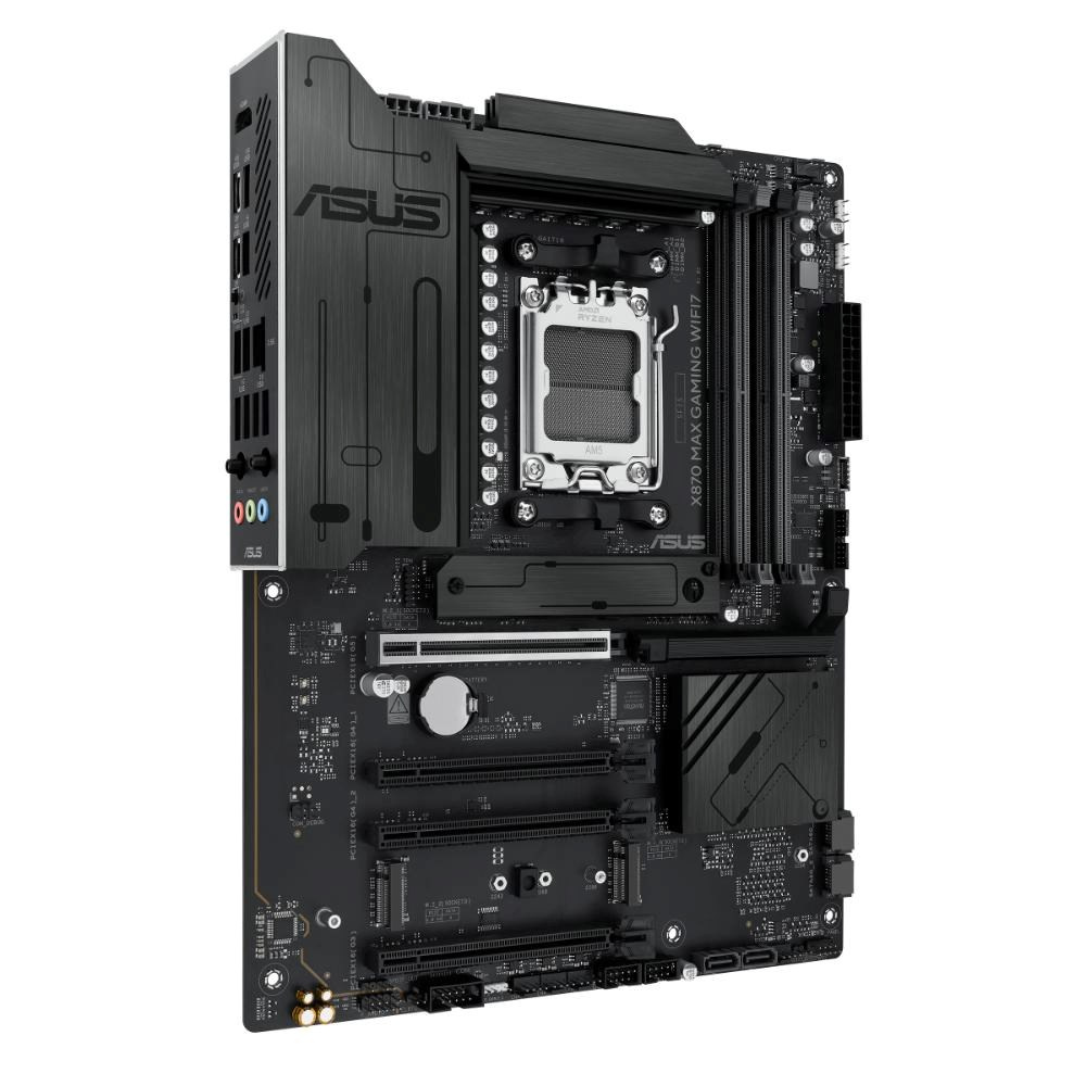 ASUS X870 series motherboards are expertly engineered to unleash the full potential of AMD Ryzen™ 9000 series processors. Boasting a robust power design, comprehensive cooling solutions and intelligent tuning options, the X870 MAX GAMING WIFI7 motherboard provides users and PC DIY builders with a range of performance optimizations via intuitive software and firmware features. It’s designed to be Advanced AI PC-ready, offering the power and connectivity needed for demanding AI applications.