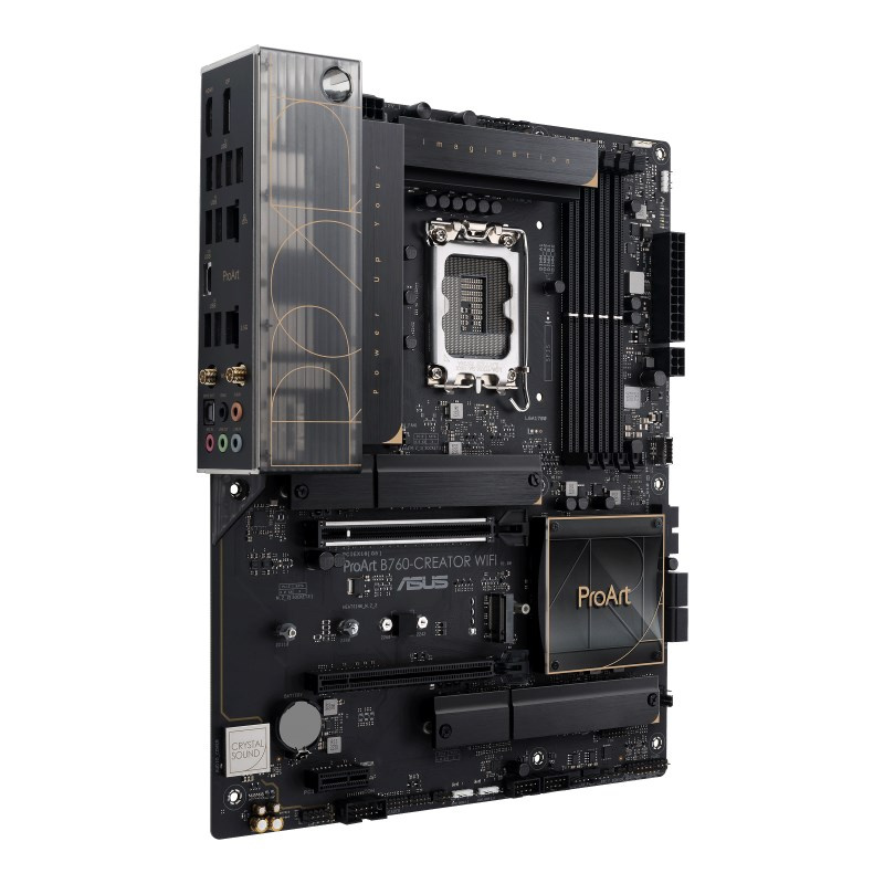 ProArt B760-Creator WiFi is an enhanced motherboard designed for content creation workloads like virtual production, 3D rendering and 4K/8K video editing. It unleashes the performance of 14th & 13th & 12th Gen Intel® Core™ processors through robust power delivery and cooling design, and its comprehensive connectivity includes three M.2 slots, WiFi 6, 2.5 Gb and 1 Gb Ethernet, a USB 3.2 Gen 2x2 Type-C® front-panel connector with 60W Quick Charge 4+ and a Thunderbolt™ 4 header.