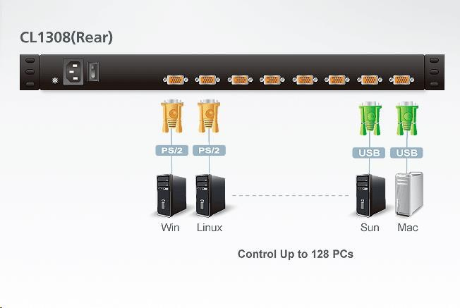 Prepínač KVM s integrovanou klávesnicou, touchpadom a 19" LCD displejom v stohovateľnej výsuvnej zásuvke. Vhodný do serverovne, kde vám ušetrí miesto. K prepínaču KVM možno pripojiť až 16 počítačov s rozhraním USB alebo PS/2 a možno ho montovať do stojana. Prepínač možno ovládať pomocou tlačidiel, klávesovej skratky alebo prostredníctvom vstavanej ponuky OSD.