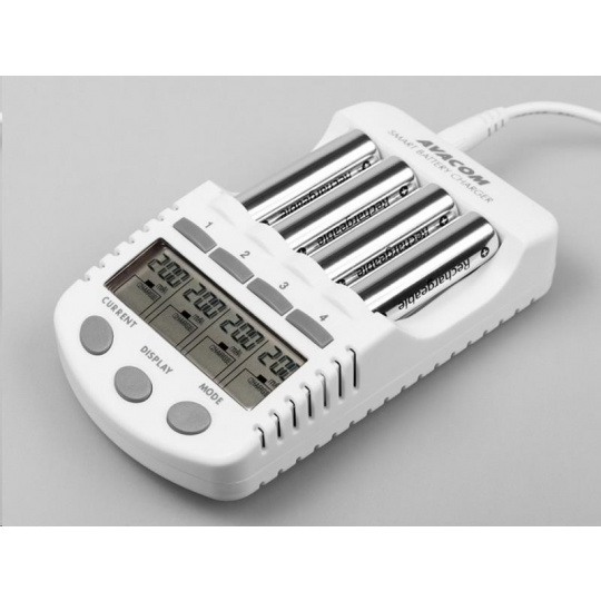 Inteligentná štyrikanálová nabíjačka tužkových AA a mikrotužkových AAA batérií. Nabíja Ni-MH a Ni-Cd batérie. Nabíjací prúd 200, 500, 700, a 1000mA.