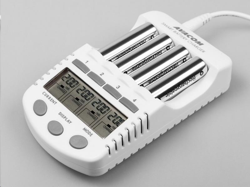 Inteligentná štyrikanálová nabíjačka tužkových AA a mikrotužkových AAA batérií. Nabíja Ni-MH a Ni-Cd batérie. Nabíjací prúd 200, 500, 700, a 1000mA.
