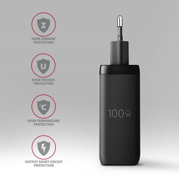 Kompaktné rozmery a vysoký výkon sú spôsobené použitím novej technológie GaN. Použité komponenty z nitridu gália pracujú s vysokou účinnosťou, čo umožňuje vysoký výkon v malých rozmeroch. Nabíjačka je vybavená dvoma výstupmi Power Delivery 3.0 / Quick Charge 4+ USB Type-C a jedným Quick Charge 3.0 USB Type-A, čo umožňuje rýchle nabíjanie nielen smartfónov a tabletov, ale aj notebookov.