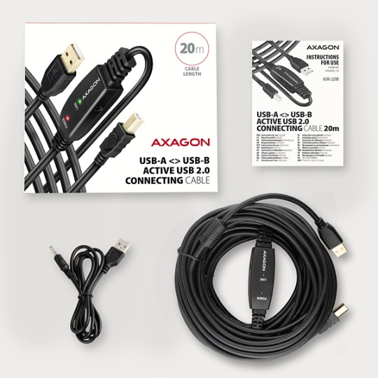 AXAGON ADR-220B, USB 2.0 A-M -> B-M aktívny prepojovací / repeater kábel, 20 m