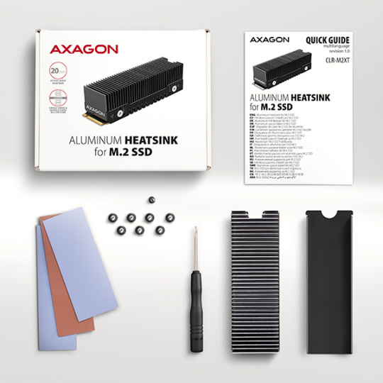 AXAGON CLR-M2XT, hliníkový pasívny chladič pre jedno aj obojstranný M.2 SSD disk, výška 24 mm
