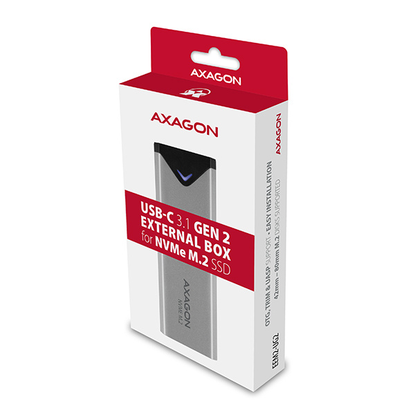 Super rýchly externý box AXAGON EEM2-UG2 s USB 3.2 Gen 2 rozhraním je určený pre NVMe (PCI-Express) M.2 SSD disky.