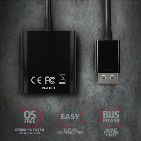 • Ide o čisto hardvérový prevodník, prevod zabezpečuje iba čip adaptéra bez účasti počítača, žiadne ovládače sa neinštalujú, kompatibilita teda nie je závislá od používaného operačného systému.