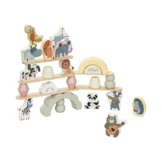 Drevená balančná hra s veselé zvieratká, doskami, kockami a s dúhou, je multifunkčná hračka, s ktorou si užijú veľa zábavy deti aj celá rodina. Pri tejto balančnej hre môže balansovať všetko, čo nájdete v balení. Akú vysokú pyramídu a čo všetko na jej výstavbu deti použijú, je čisto na ich fantáziu. Pri balančnej hre deti zdokonaľujú jemnú motoriku, koordináciu, logické myslenie, priestorovú predstavivosť, učia sa sústrediť sa a trpezlivosti.