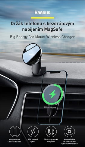 Držiak Baseus Big Energy s bezdrôtovým nabíjaním 15 W čierny (kompatibilný s Apple iPhone 12 Series)