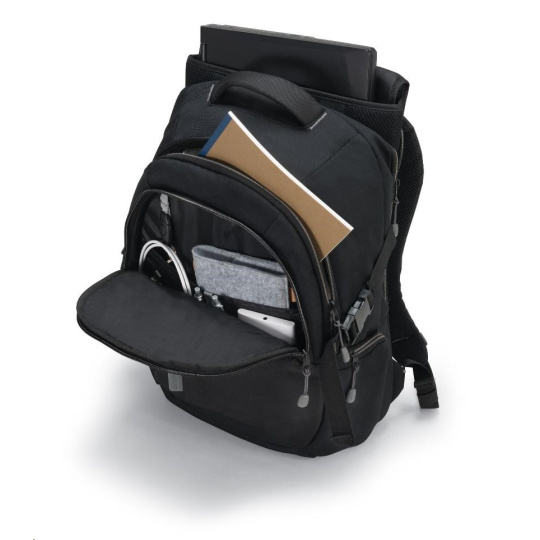 Batoh ECO vám umožní pohodlne prenášať notebook. Špeciálne odnímateľné puzdro na notebook je polstrované penou s vysokou hustotou (HDF), ktorá zabezpečuje notebook počas cesty. DICOTA plne podporuje udržateľný materiál. Preto sa väčšina obalov na notebooky vyrába predovšetkým z recyklovaného PET.