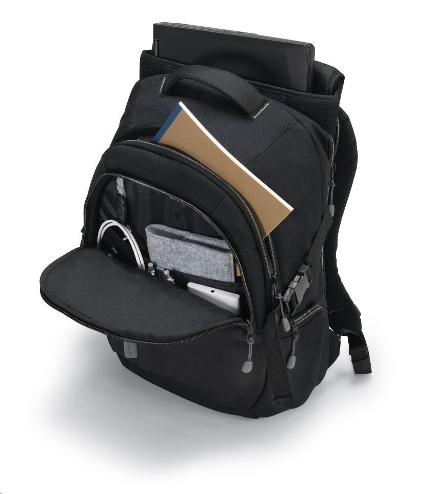 Batoh ECO vám umožní pohodlne prenášať notebook. Špeciálne odnímateľné puzdro na notebook je polstrované penou s vysokou hustotou (HDF), ktorá zabezpečuje notebook počas cesty. DICOTA plne podporuje udržateľný materiál. Preto sa väčšina obalov na notebooky vyrába predovšetkým z recyklovaného PET.
