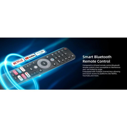 Taktiež diaľkový ovládač je vyrobený z materiálov najvyššej kvality. Zabezpečí rýchlu a príjemnú komunikáciu s televízorom. Vyhradené tlačidlá na Netflix, Youtube, Google Play alebo Prime Video vás rýchlo dostanú k obsahu, ktorý hľadáte.