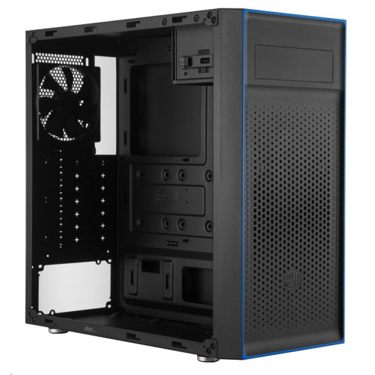 MasterBox E501L je základným riešením pre optimalizované chladenie. Gradient perforácií pod ODD umožňuje vstup čerstvého vzduchu do systému pre vzduchom aj kvapalinou chladené konfigurácie. Lesklý farebný akcent okolo predného panela dopĺňa vetraný priestor.